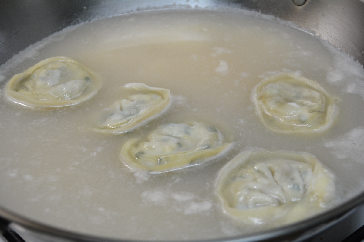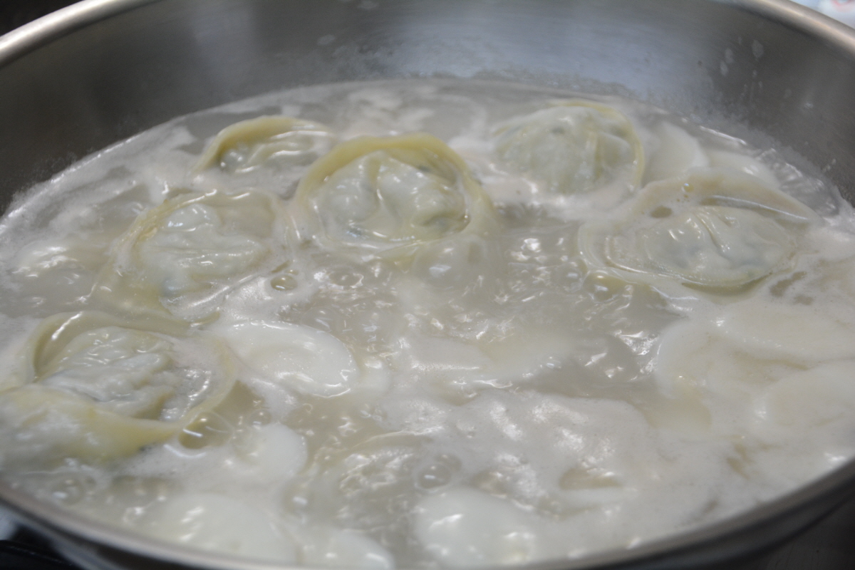 만두가 잘 익어 동동동 뜨면.. 파를 넣어 주시고 불을 끄면 되는데요,