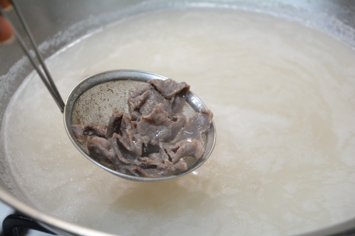 고기가 익으면 건져서 식힌 후에 적당히 썰어 주시면 됩니다,