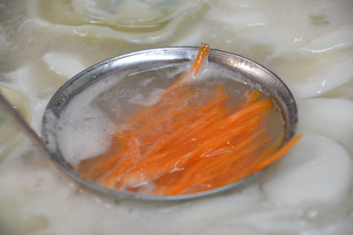 당근이 보이길래 조금 채 썰어서 만둣국에 채로 받쳐서 익혔습니다.